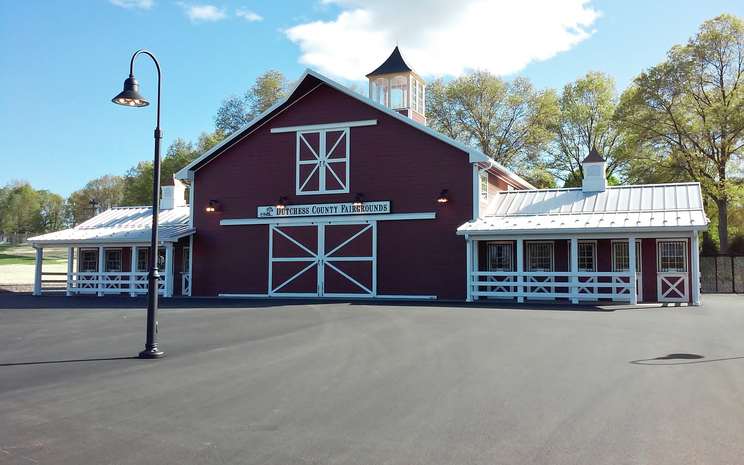 The building is fully insulated and climate-controlled; the center section features soaring ceilings with timber columns and trusses. On the interior, there are displays relating to farming and the agricultural history of Dutchess County. The ticket booths have state-of-the-art electronics to speed the entry process.