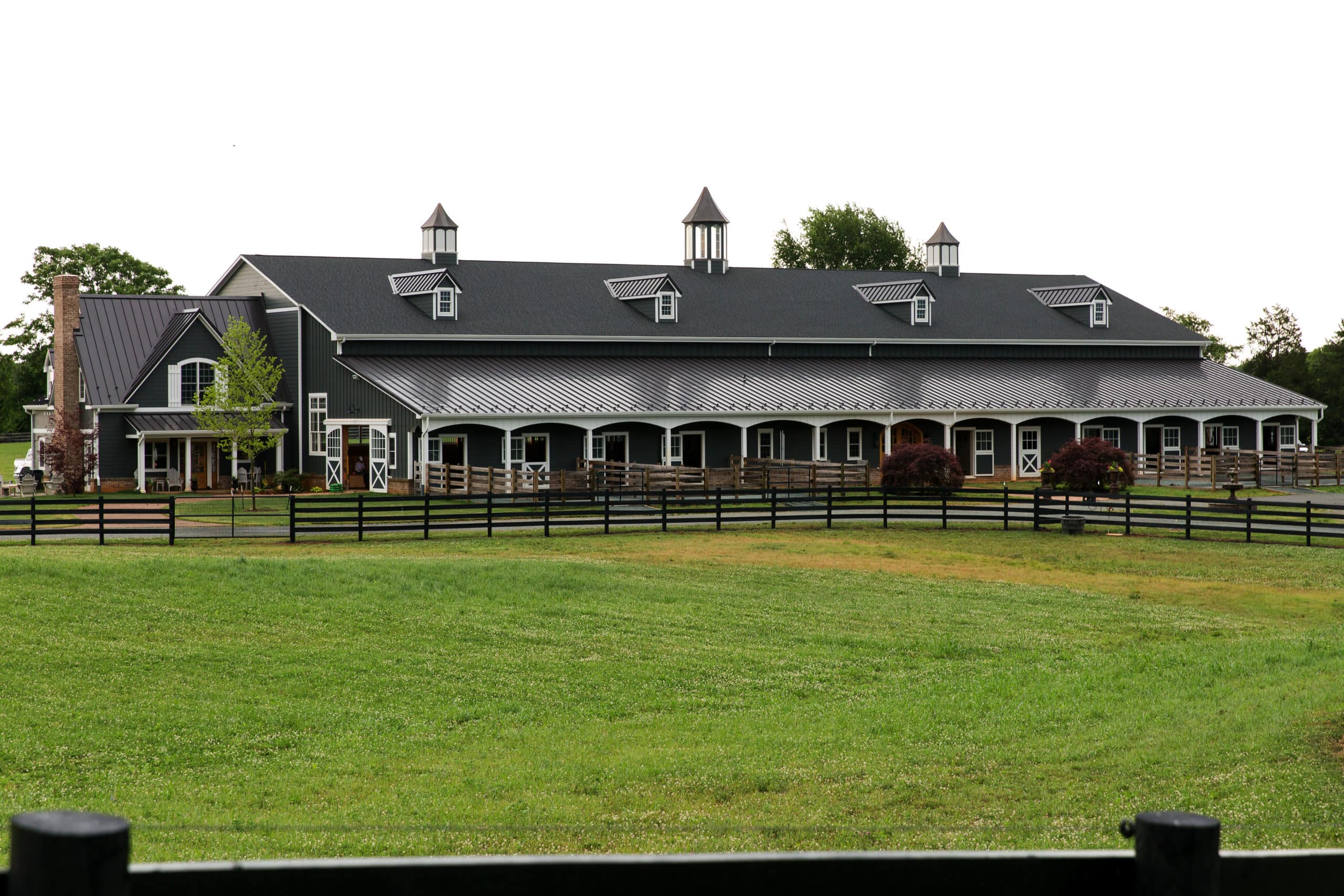Horse barn has 8 King “Monarch” Euro stalls, all with walk-out to paddocks; tack room, wash stall, feed room, grain room, laundry and half bath. Barn is attached to 70’x200’ indoor arena, fully finished, with dust free footing — barn is open to arena on long side, with half wall and arched wood openings. Owners live close to their horses in a 2 bedroom, 2 bathroom apartment (with garage) located on the gable end of the complex.