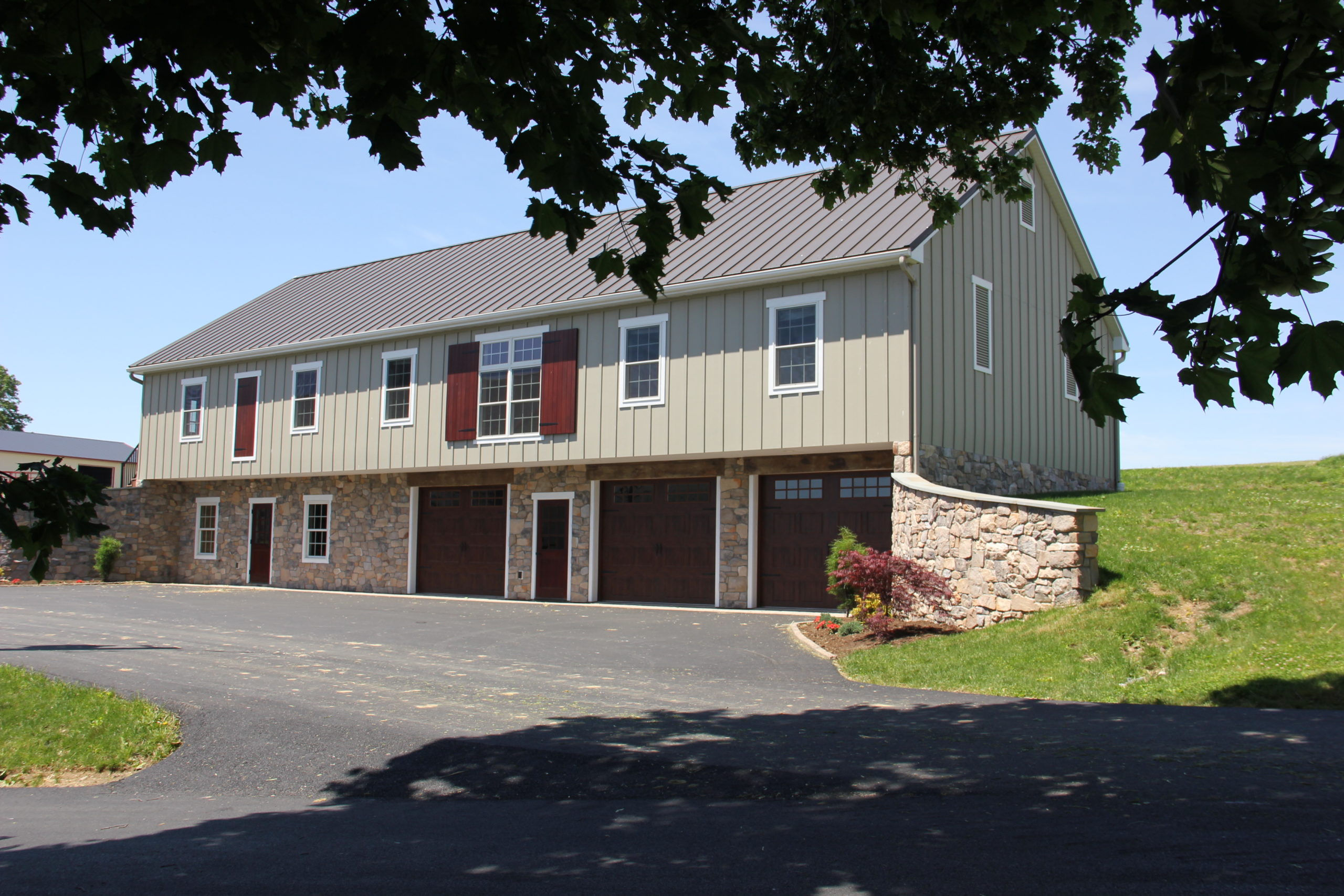 A bank barn with a dual purpose — the ground level serves as an equipment garage and workshop, while the 2nd floor is a large party barn. The building is 32’w x 76′ l